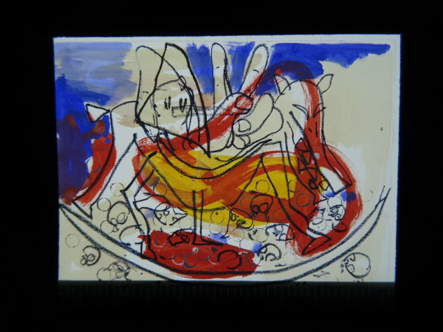 Tekening vetkrijt aquarel op Japans papier, 1999, 30×30,5cm